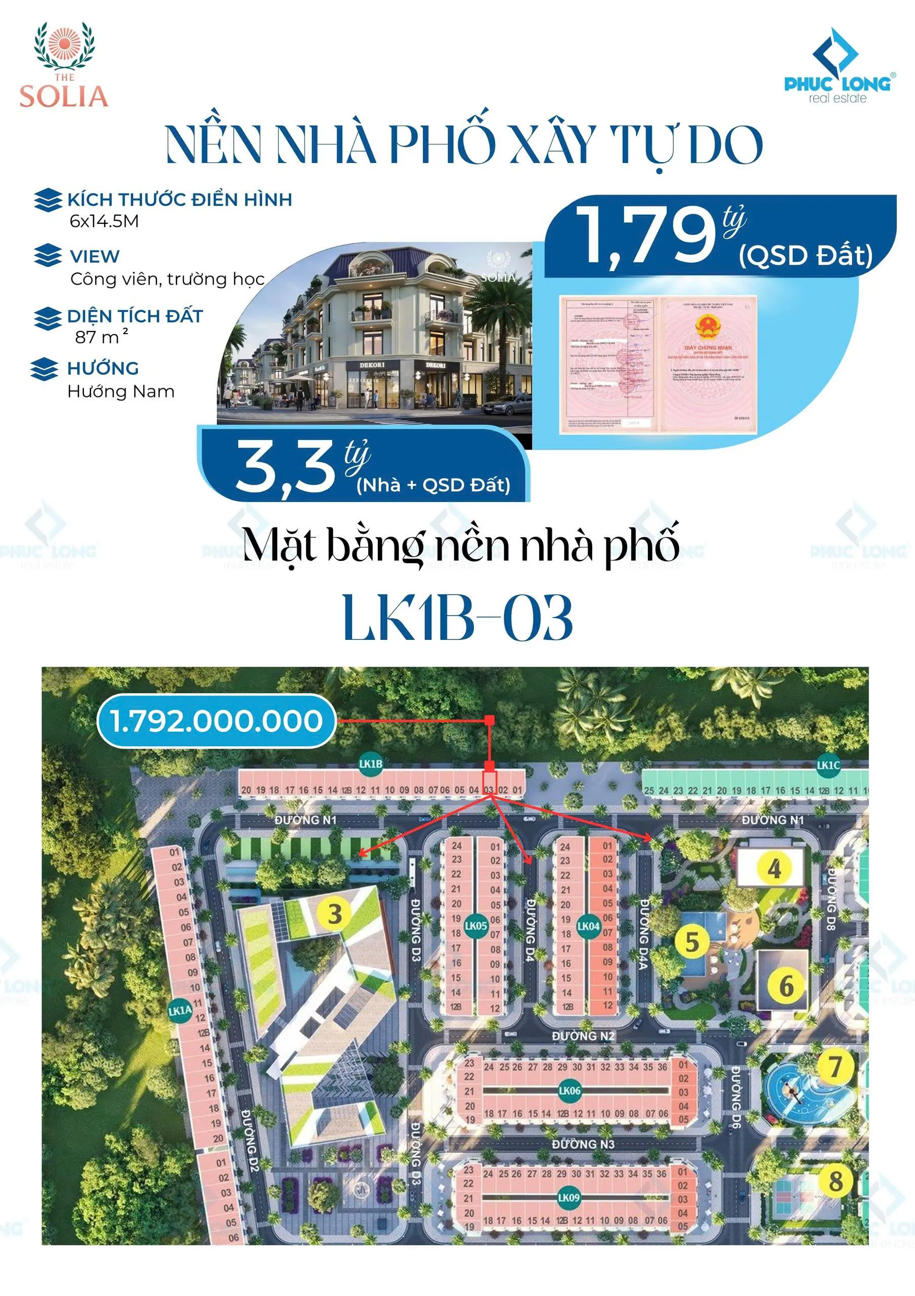 - Sản phẩm: Đất nền (sẵn sổ) & nhà phố, shophouse.